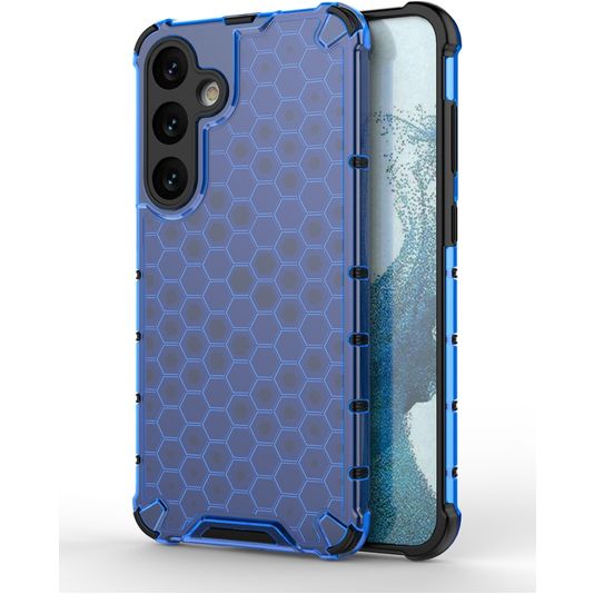Bescherm je Samsung Galaxy S24 Plus tegen beschadigingen met de Mobigear Honeycomb backcover gemaakt van stevig kunststof. Het hoesje is uitgevoerd in de kleur blauw en bedekt de achter- en zijkant van je telefoon. De voorkant blijft met deze backcover vrij, zodat je scherm altijd direct toegankelijk is.