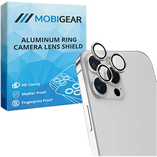 De Mobigear camera lens protector is voorzien van een stijlvolle omlijsting in de kleur zilver. Deze omlijsting loopt schuin af voor een naadloze aansluiting op je Apple iPhone 13 Pro Max. Bovendien bedekt deze camera lens protector door het frame je volledige toestel van rand tot rand.