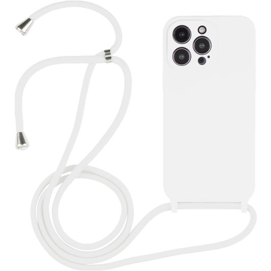 Mobigear Lanyard iPhone 15 Pro Max Siliconen Hoesje met koord - Wit