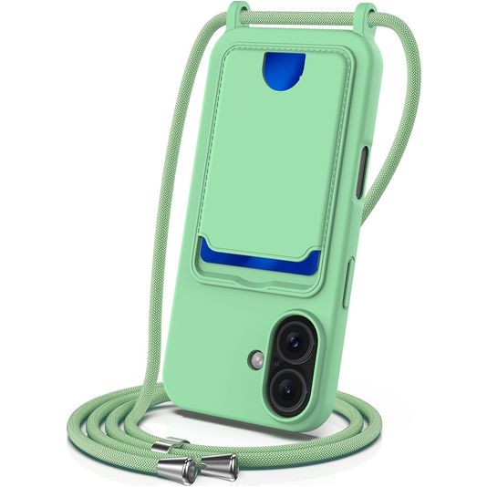 Mobigear Lanyard Card iPhone 16 Plus Siliconen Hoesje met koord en Pasjeshouder - Groen