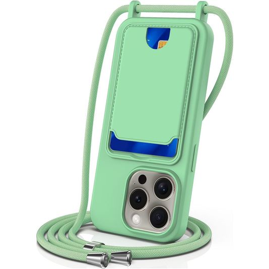 Mobigear Lanyard Card iPhone 16 Pro Siliconen Hoesje met koord en Pasjeshouder - Groen
