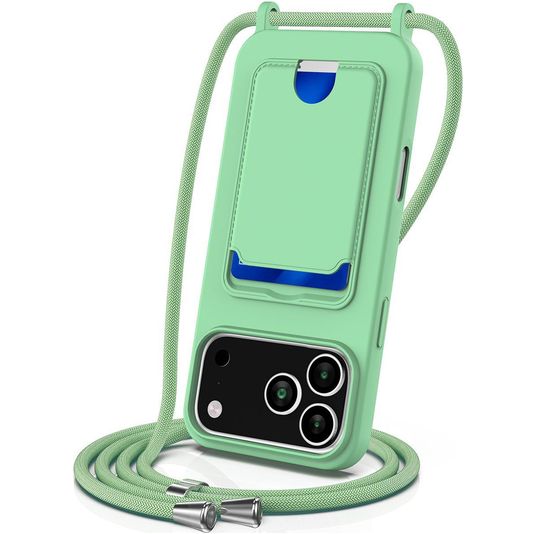 Mobigear Lanyard Card iPhone 17 Pro Siliconen Hoesje met koord en Pasjeshouder - Groen