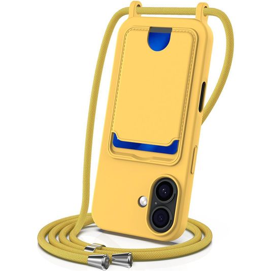 Mobigear Lanyard Card iPhone 17 Siliconen Hoesje met koord en Pasjeshouder - Geel