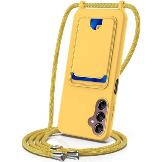Mobigear Lanyard Card Samsung Galaxy S24 FE Siliconen Hoesje met koord en Pasjeshouder - Geel