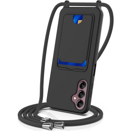 Mobigear Lanyard Card Samsung Galaxy S24 FE Siliconen Hoesje met koord en Pasjeshouder - Zwart