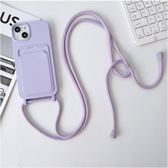 Mobigear Lanyard Card iPhone 15 Siliconen Hoesje met koord en Pasjeshouder - Paars