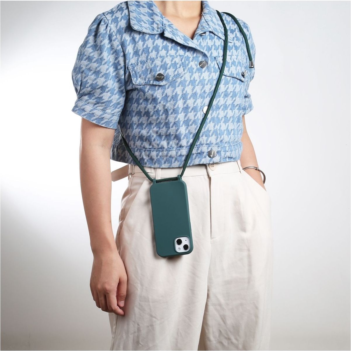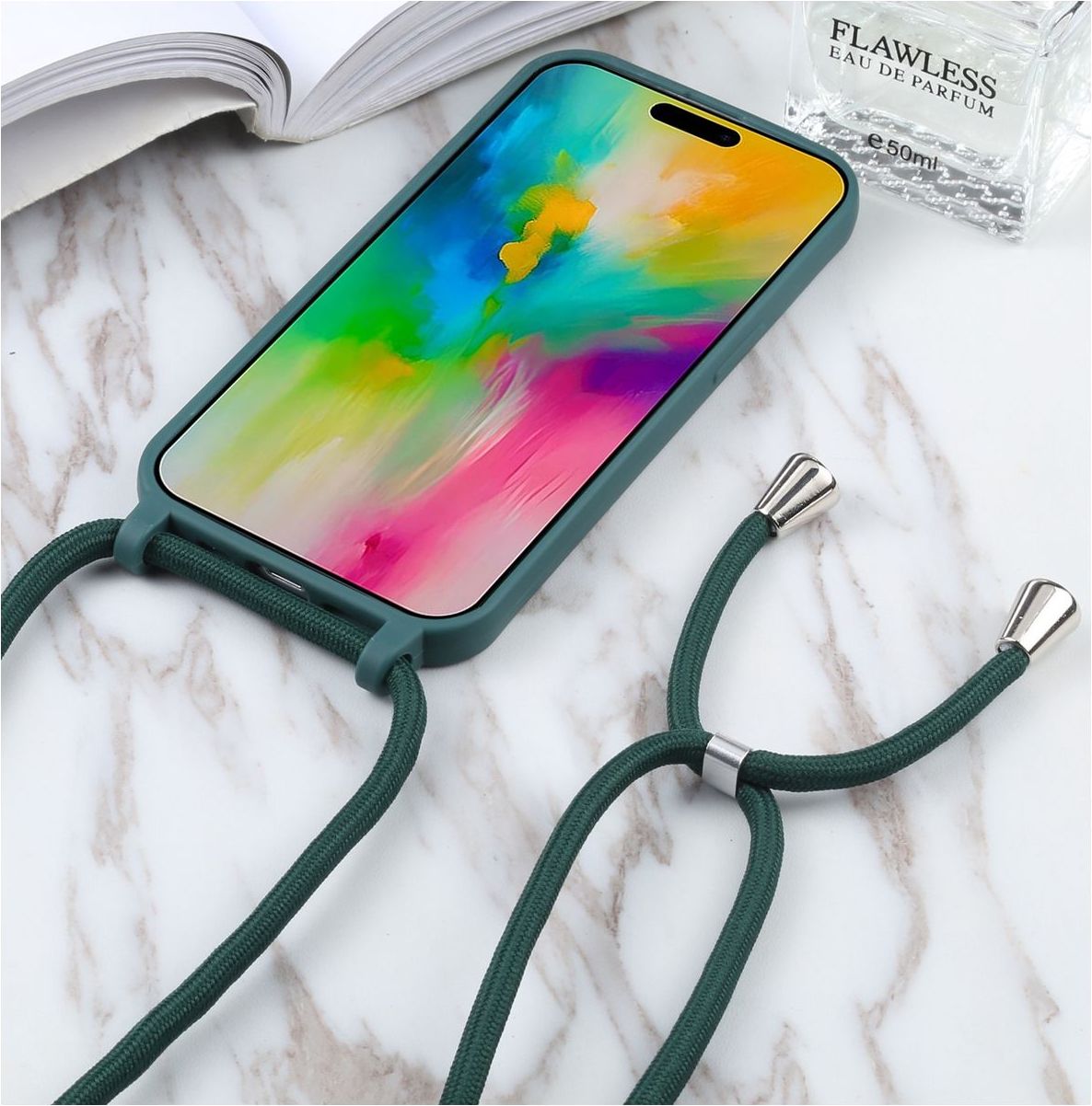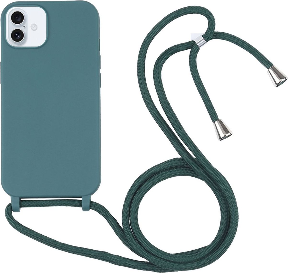 Mobigear Lanyard iPhone 16 Plus Siliconen Hoesje met koord - Groen
