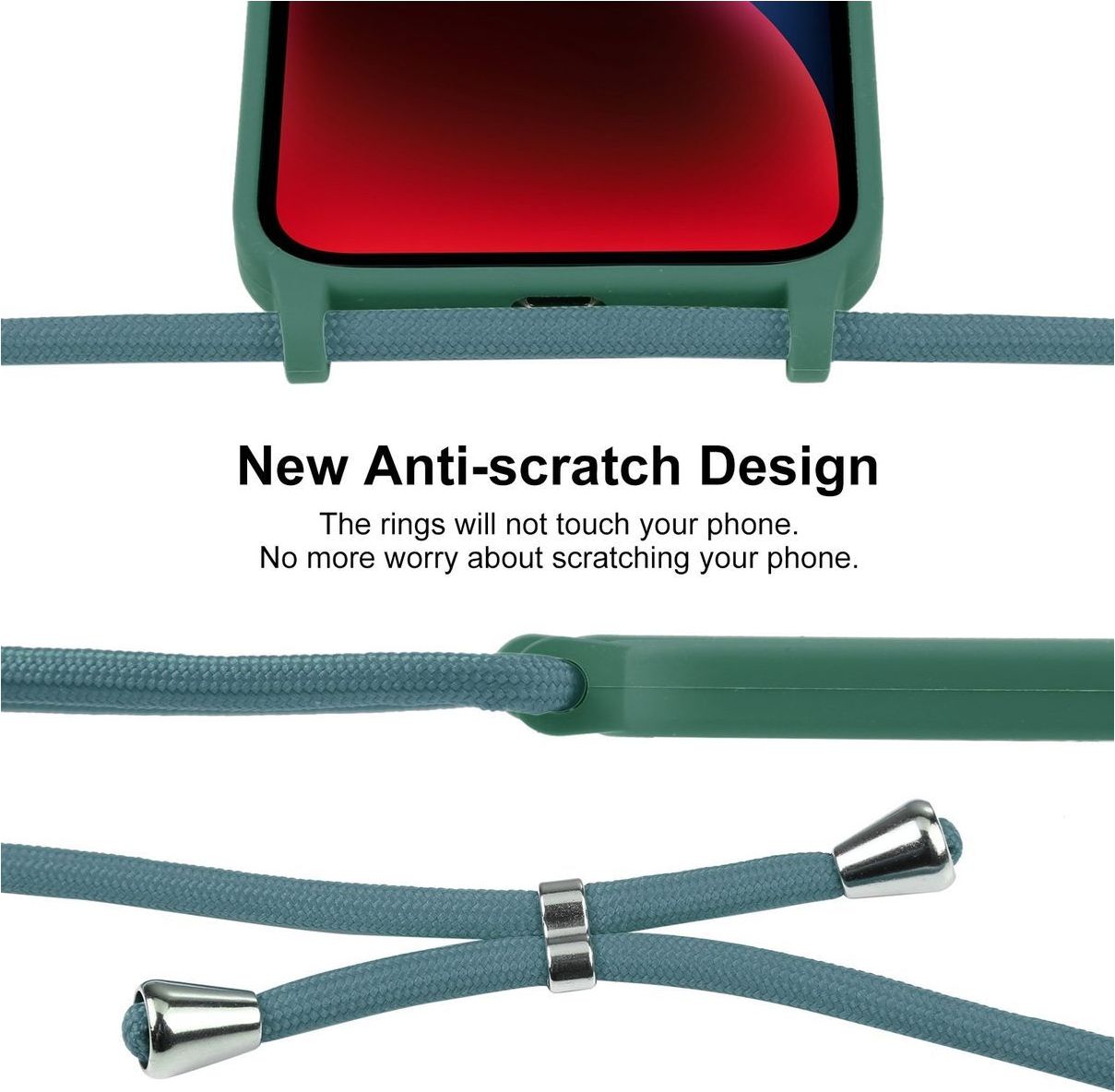 Mobigear Lanyard iPhone 14 Siliconen Hoesje met koord - Groen