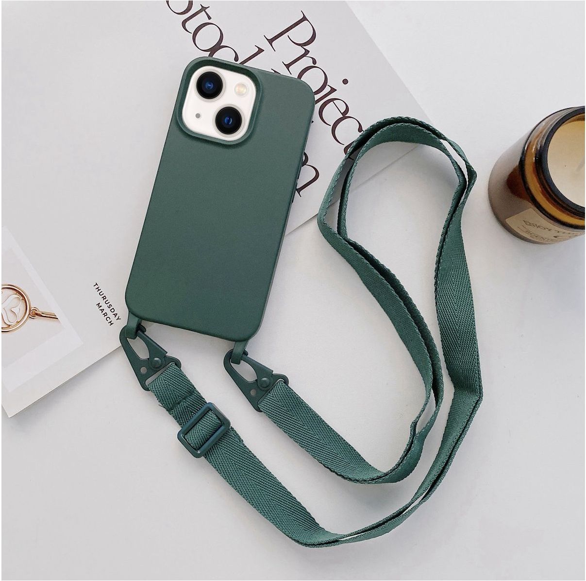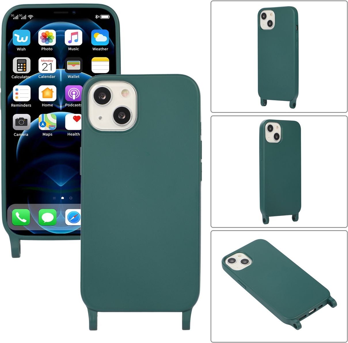 Mobigear Lanyard iPhone 14 Siliconen Hoesje met koord - Donkergroen