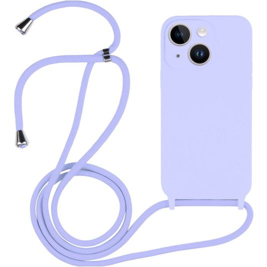 Mobigear Lanyard iPhone 14 Siliconen Hoesje met koord - Paars