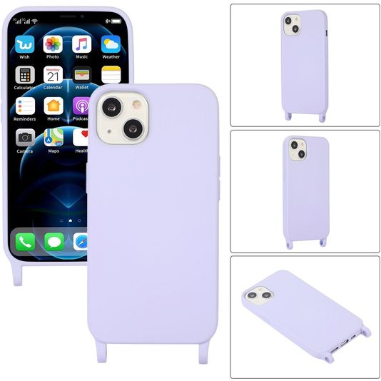 Mobigear Lanyard iPhone 14 Siliconen Hoesje met koord - Paars