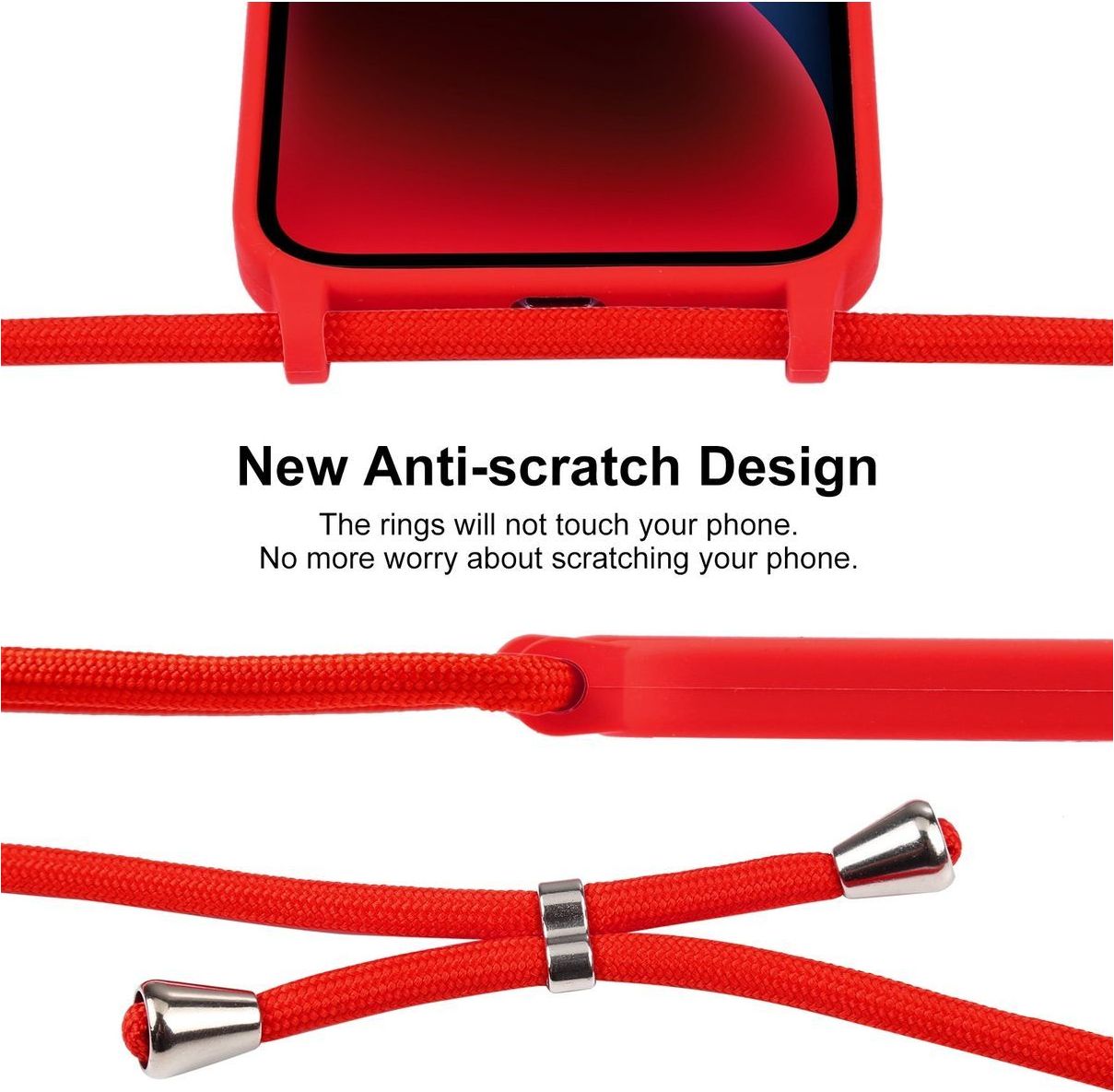 Met dit hoesje met koord voor de Apple iPhone 14 Plus kun je je telefoon om je nek dragen. Het koord is in lengte verstelbaar en daardoor altijd comfortabel te dragen. Hierdoor heb je je telefoon altijd binnen handbereik en kun je je handen vrij houden.