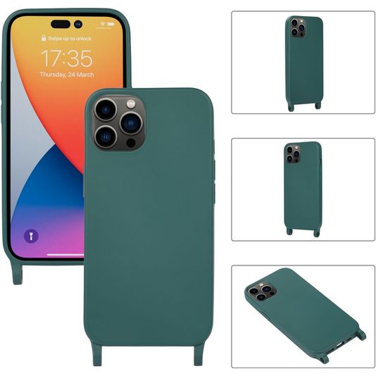 Mobigear Lanyard iPhone 14 Pro Max Siliconen Hoesje met koord - Donkergroen