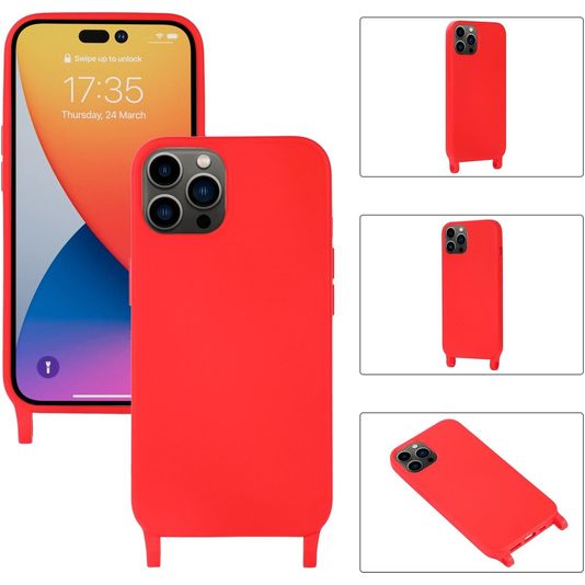Mobigear Lanyard iPhone 14 Pro Max Siliconen Hoesje met koord - Rood