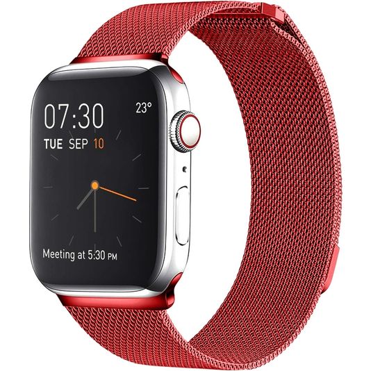 Mobigear Loop Milanese Apple Watch Bandje Magneetsluiting - 42/41/40/38 mm - Rood