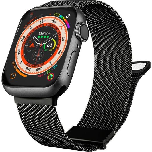 Mobigear Luxury Loop Milanese Apple Watch Bandje Magneetsluiting - 49/46/45/44 mm - Zwart