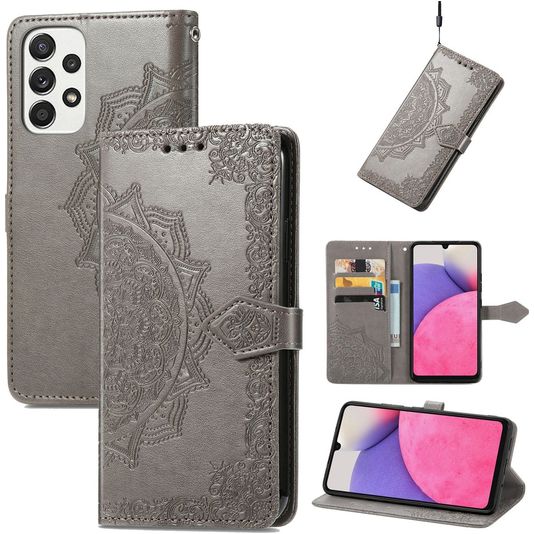 Wil je geen standaard hoesje voor jouw Samsung Galaxy A33? Kies dan voor deze leuke Mobigear Mandala Samsung Galaxy A33 bookcase. Dit hoesje zorgt ervoor dat jouw Samsung Galaxy A33 niet alleen goed beschermd is tegen vallen en stoten, maar daarnaast ook voorzien is van een leuk Mandala design. Zo maak je van jouw telefoon een echte eyecatcher. De Mobigear Mandala bookcase in de uitvoering Mandala grijs is gemaakt van hoogwaardig kunstleer. Met een boekhoesje is je Samsung Galaxy A33 rondom uitstekend beschermd. De voorklep opent opzij als een boek en sluit stevig met een magnetische sluiting. Er is ruimte voor 3 pasjes zodat je altijd je bankpas of ID bij de hand hebt.