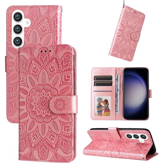 Wil je een Samsung Galaxy S24 hoesje met volledige bescherming rondom en een stijlvol en praktisch design? Dan is dit Mobigear Sunflower bookcase hoesje voor Samsung Galaxy S24 de perfecte keuze. Het booktype hoesje is gemaakt van hoogwaardig kunstleer en uitgevoerd in de kleur roségoud. Met een boek hoesje is je Samsung Galaxy S24 rondom goed beschermd, inclusief het kwetsbare scherm. De voorklep opent opzij als een boek en sluit stevig met een magnetische sluiting. Er is ruimte voor 3 pasjes zodat je altijd je bankpas of ID bij de hand hebt.