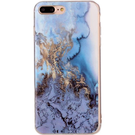 Mobigear Marble iPhone 8 Plus Hoesje Flexibel TPU Backcover - Blauw