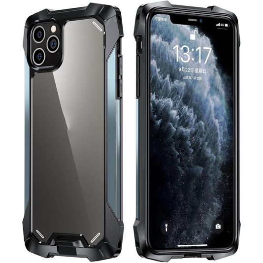 Mobigear Metal Tough iPhone 12 Pro Max Hoesje Hardcase Backcover Shockproof - Transparant / Marineblauw