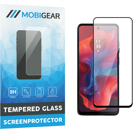 De Mobigear Premium screenprotector is voorzien van een stijlvolle omlijsting in de kleur zwart. Deze omlijsting loopt schuin af voor een naadloze aansluiting op je Motorola Moto G04. Bovendien bedekt deze screenprotector door het frame je volledige toestel van rand tot rand.