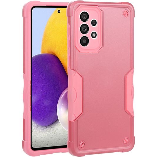 Bescherm je Samsung Galaxy A73 tegen beschadigingen met de Mobigear Non-slip Armor backcover gemaakt van stevig kunststof. Het hoesje is uitgevoerd in de kleur roze en bedekt de achter- en zijkant van je telefoon. De voorkant blijft met deze backcover vrij, zodat je scherm altijd direct toegankelijk is. Bij deze backcover is je scherm niet bedekt. Bestel een Samsung Galaxy A73 screenprotector mee voor volledige bescherming.