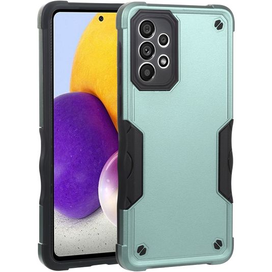Bescherm je Samsung Galaxy A73 tegen beschadigingen met de Mobigear Non-slip Armor backcover gemaakt van stevig kunststof. Het hoesje is uitgevoerd in de kleur zwart / turquoise en bedekt de achter- en zijkant van je telefoon. De voorkant blijft met deze backcover vrij, zodat je scherm altijd direct toegankelijk is. Bij deze backcover is je scherm niet bedekt. Bestel een Samsung Galaxy A73 screenprotector mee voor volledige bescherming.