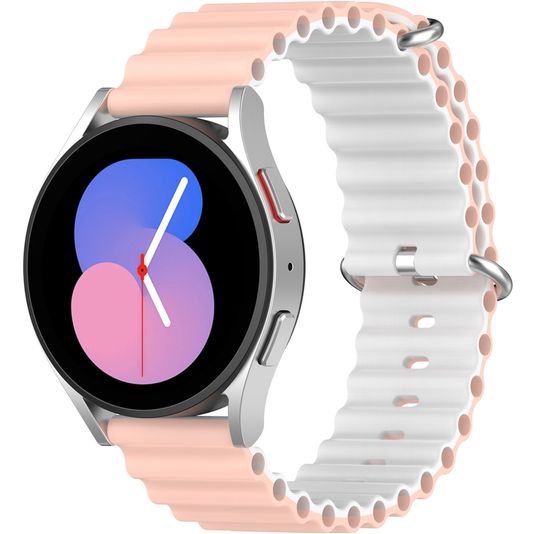 Mobigear Ocean Siliconen Smartwatch Bandje Gespsluiting - Universeel 22 mm connector - Wit / Roze