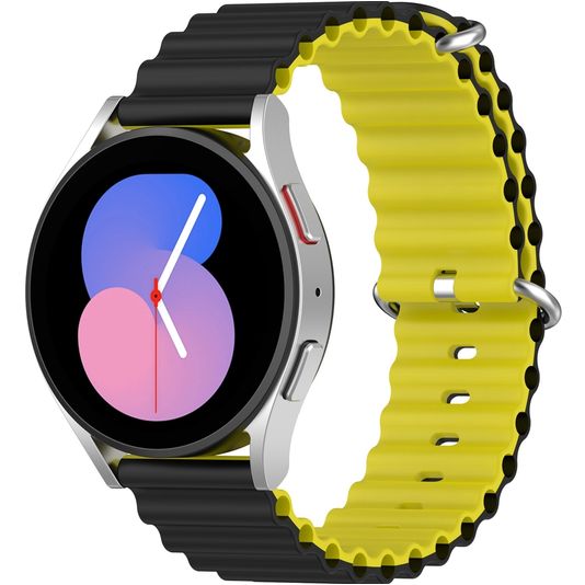 Mobigear Ocean Siliconen Smartwatch Bandje Gespsluiting - Universeel 22 mm connector - Zwart / Geel