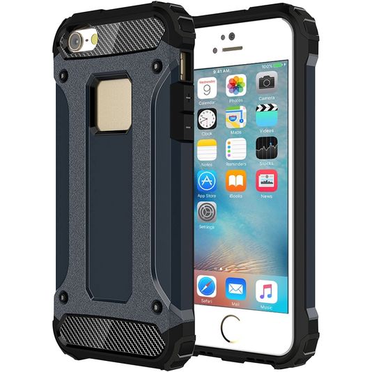 Bescherm je Apple iPhone SE (2016) tegen beschadigingen met de Mobigear Outdoor backcover gemaakt van stevig kunststof. Het hoesje is uitgevoerd in de kleur donkerblauw en bedekt de achter- en zijkant van je telefoon. De voorkant blijft met deze backcover vrij, zodat je scherm altijd direct toegankelijk is.