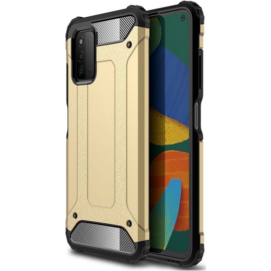 Bescherm je Samsung Galaxy A03s tegen beschadigingen met de Mobigear Outdoor backcover gemaakt van stevig kunststof. Het hoesje is uitgevoerd in de kleur goud en bedekt de achter- en zijkant van je telefoon. De voorkant blijft met deze backcover vrij, zodat je scherm altijd direct toegankelijk is. Bij deze backcover is je scherm niet bedekt. Bestel een Samsung Galaxy A03s screenprotector mee voor volledige bescherming.
