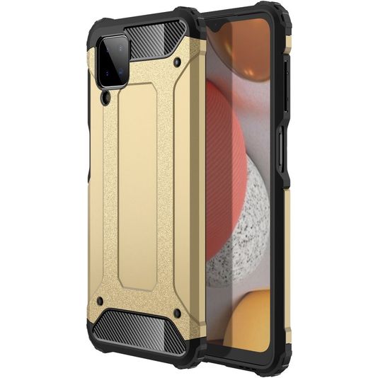 Bescherm je Samsung Galaxy A12 tegen beschadigingen met de Mobigear Outdoor backcover gemaakt van stevig kunststof. Het hoesje is uitgevoerd in de kleur goud en bedekt de achter- en zijkant van je telefoon. De voorkant blijft met deze backcover vrij, zodat je scherm altijd direct toegankelijk is.