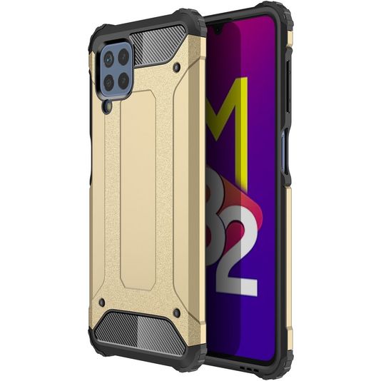 Bescherm je Samsung Galaxy M32 4G tegen beschadigingen met de Mobigear Outdoor backcover gemaakt van stevig kunststof. Het hoesje is uitgevoerd in de kleur goud en bedekt de achter- en zijkant van je telefoon. De voorkant blijft met deze backcover vrij, zodat je scherm altijd direct toegankelijk is. Bij deze backcover is je scherm niet bedekt. Bestel een Samsung Galaxy M32 4G screenprotector mee voor volledige bescherming.