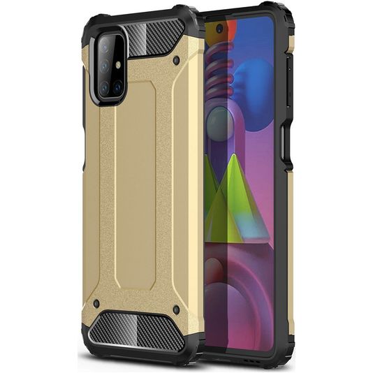 Bescherm je Samsung Galaxy M51 tegen beschadigingen met de Mobigear Outdoor backcover gemaakt van stevig kunststof. Het hoesje is uitgevoerd in de kleur goud en bedekt de achter- en zijkant van je telefoon. De voorkant blijft met deze backcover vrij, zodat je scherm altijd direct toegankelijk is.