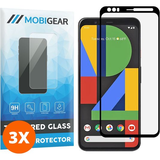 Mobigear Premium Google Pixel 4 Glazen Screenprotector - Case Friendly - Zwart (3-Pack)