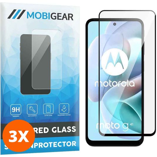 Mobigear Premium Motorola Moto G41 Glazen Screenprotector - Case Friendly - Zwart (3-Pack)