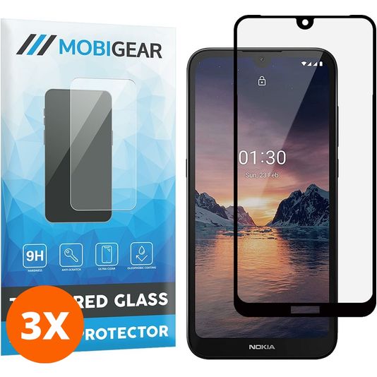 Mobigear Premium Nokia 1.3 Glazen Screenprotector - Case Friendly - Zwart (3-Pack)