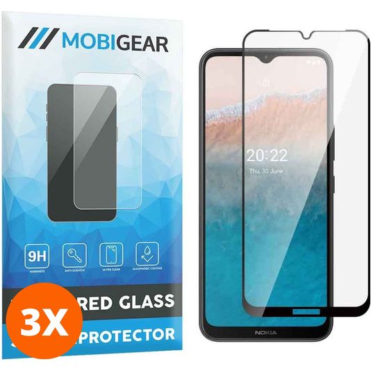 Mobigear Premium Nokia C21 Plus Glazen Screenprotector - Case Friendly - Zwart (3-Pack)