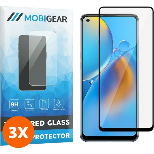 Mobigear Premium OPPO A74 4G Glazen Screenprotector - Case Friendly - Zwart (3-Pack)