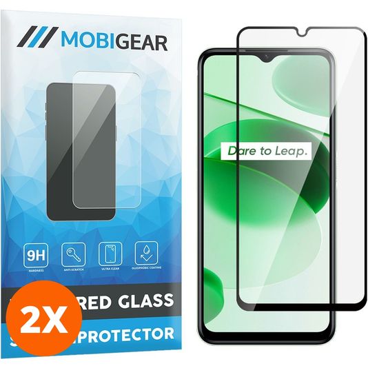 Mobigear Premium Realme C35 Glazen Screenprotector - Case Friendly - Zwart (2-Pack)