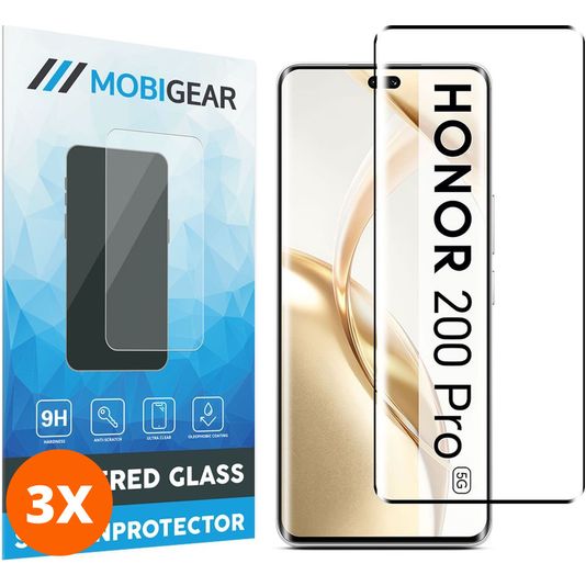 Mobigear Premium HONOR 200 Pro Glazen Screenprotector - Case Friendly - Zwart (3-Pack)
