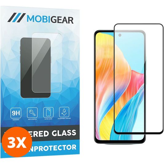 Mobigear Premium OPPO A58 4G Glazen Screenprotector - Case Friendly - Zwart (3-Pack)