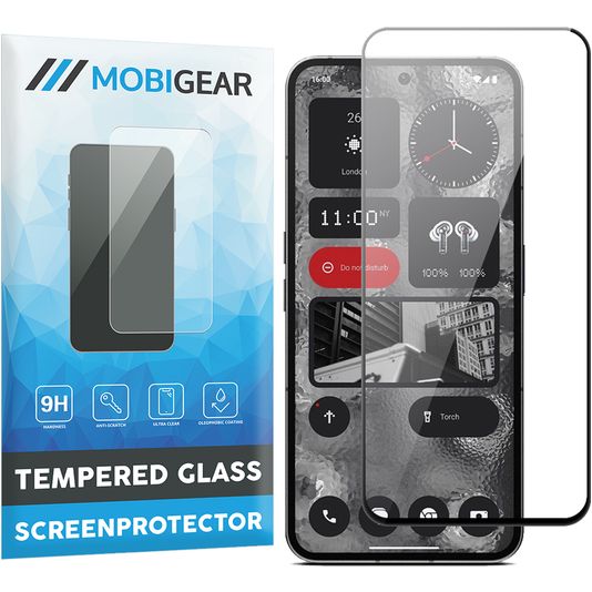 De Mobigear Premium screenprotector is voorzien van een stijlvolle omlijsting in de kleur zwart. Deze omlijsting loopt schuin af voor een naadloze aansluiting op je Nothing Phone (2). Bovendien bedekt deze screenprotector door het frame je volledige toestel van rand tot rand.
