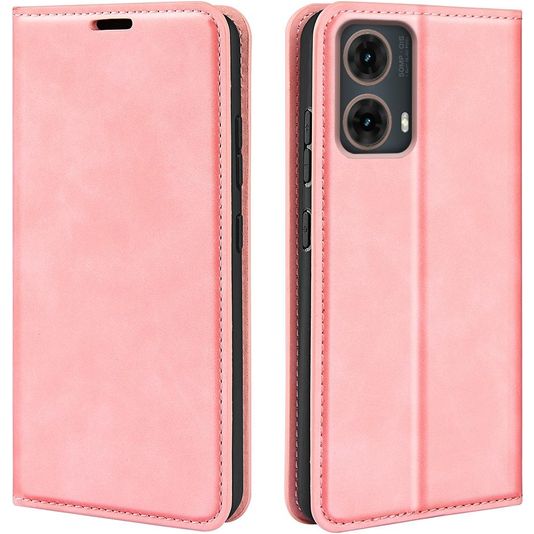 Wil je een Motorola Moto G85 hoesje met volledige bescherming rondom en een stijlvol en praktisch design? Dan is dit Mobigear Retro Slim bookcase hoesje voor Motorola Moto G85 de perfecte keuze. Het booktype hoesje is gemaakt van hoogwaardig kunstleer en uitgevoerd in de kleur roze. Met een boek hoesje is je Motorola Moto G85 rondom goed beschermd, inclusief het kwetsbare scherm. De voorklep opent opzij als een boek en sluit stevig met een magnetische sluiting. Er is ruimte voor 2 pasjes zodat je altijd je bankpas of ID bij de hand hebt.