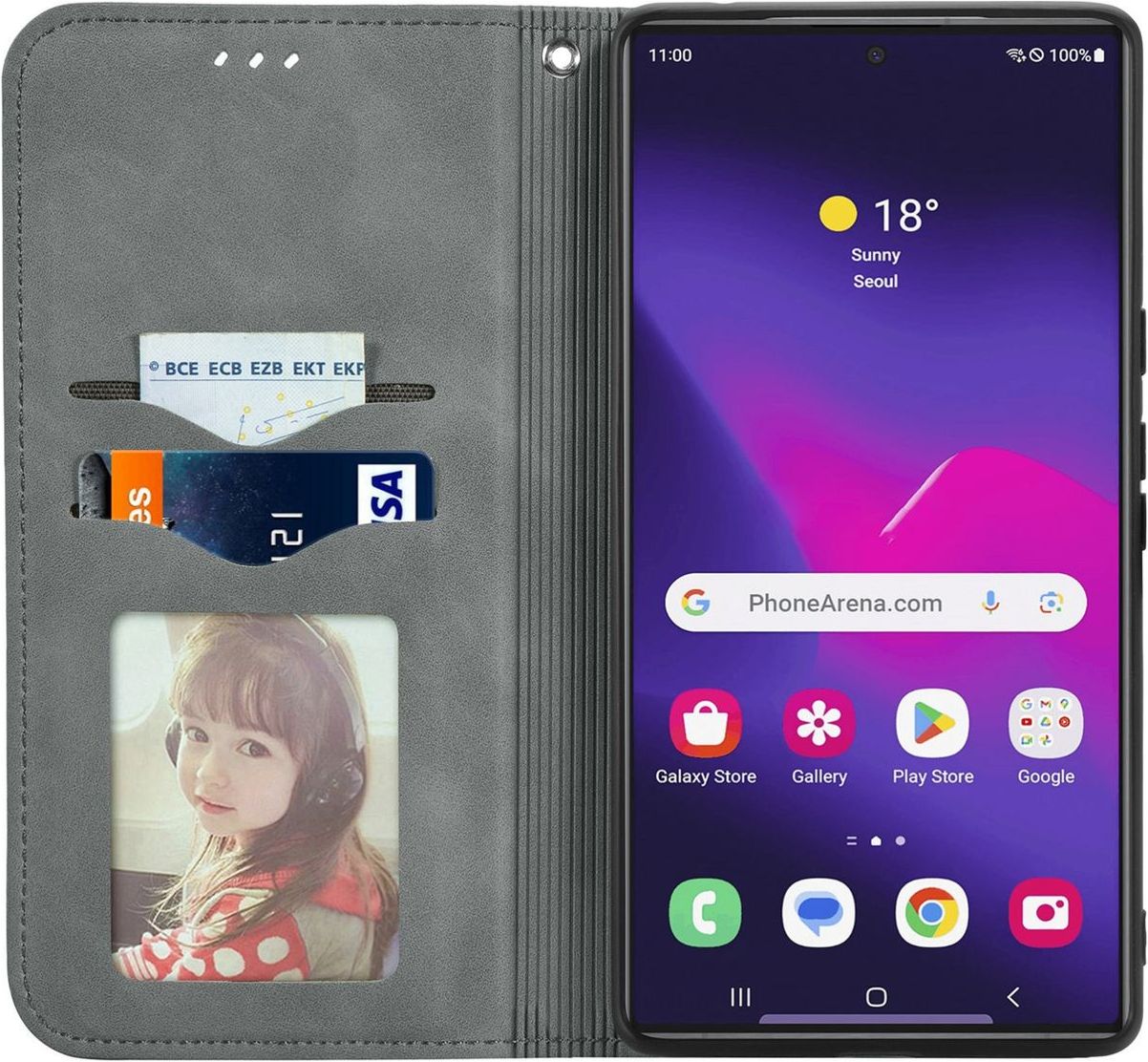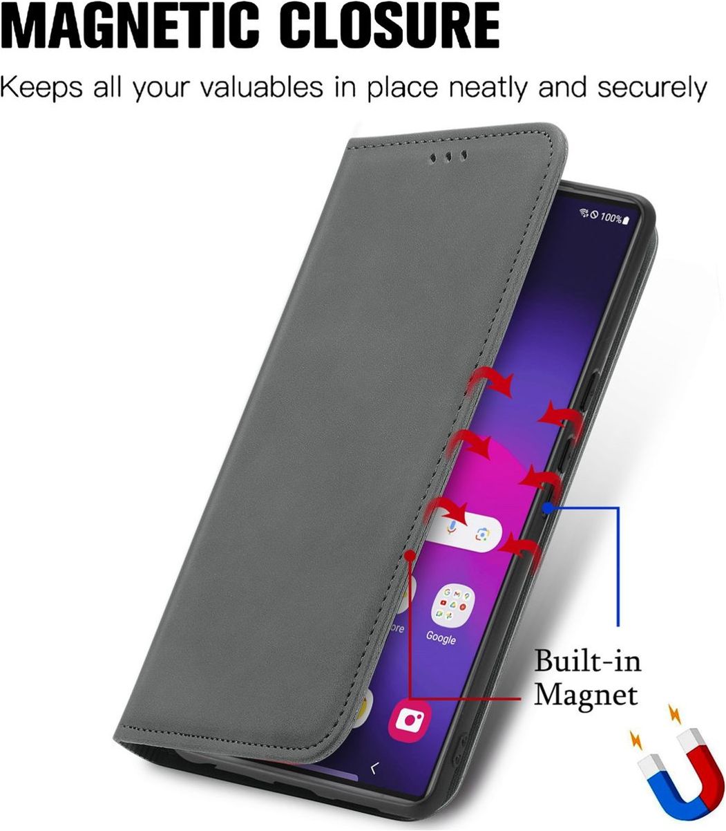 Wil je een Samsung Galaxy S25 Ultra hoesje met volledige bescherming rondom en een stijlvol en praktisch design? Dan is dit Mobigear Retro Slim bookcase hoesje voor Samsung Galaxy S25 Ultra de perfecte keuze. Het booktype hoesje is gemaakt van hoogwaardig kunstleer en uitgevoerd in de kleur grijs. Met een boek hoesje is je Samsung Galaxy S25 Ultra rondom goed beschermd, inclusief het kwetsbare scherm. De voorklep opent opzij als een boek en sluit stevig met een magnetische sluiting. Er is ruimte voor 2 pasjes zodat je altijd je bankpas of ID bij de hand hebt.