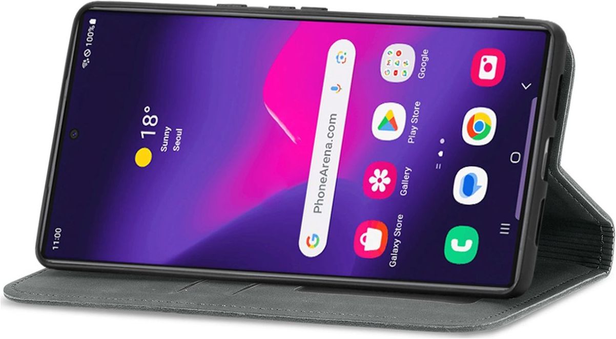 Dit veelzijdige Mobigear Retro Slim bookcase hoesje voor de Samsung Galaxy S25 Ultra heeft een handige ingebouwde standaard. Daarmee kun je jouw telefoon rechtop neerzetten. Of je nu wilt genieten van je favoriete video's of foto's, met dit hoesje kan je handsfree genieten.