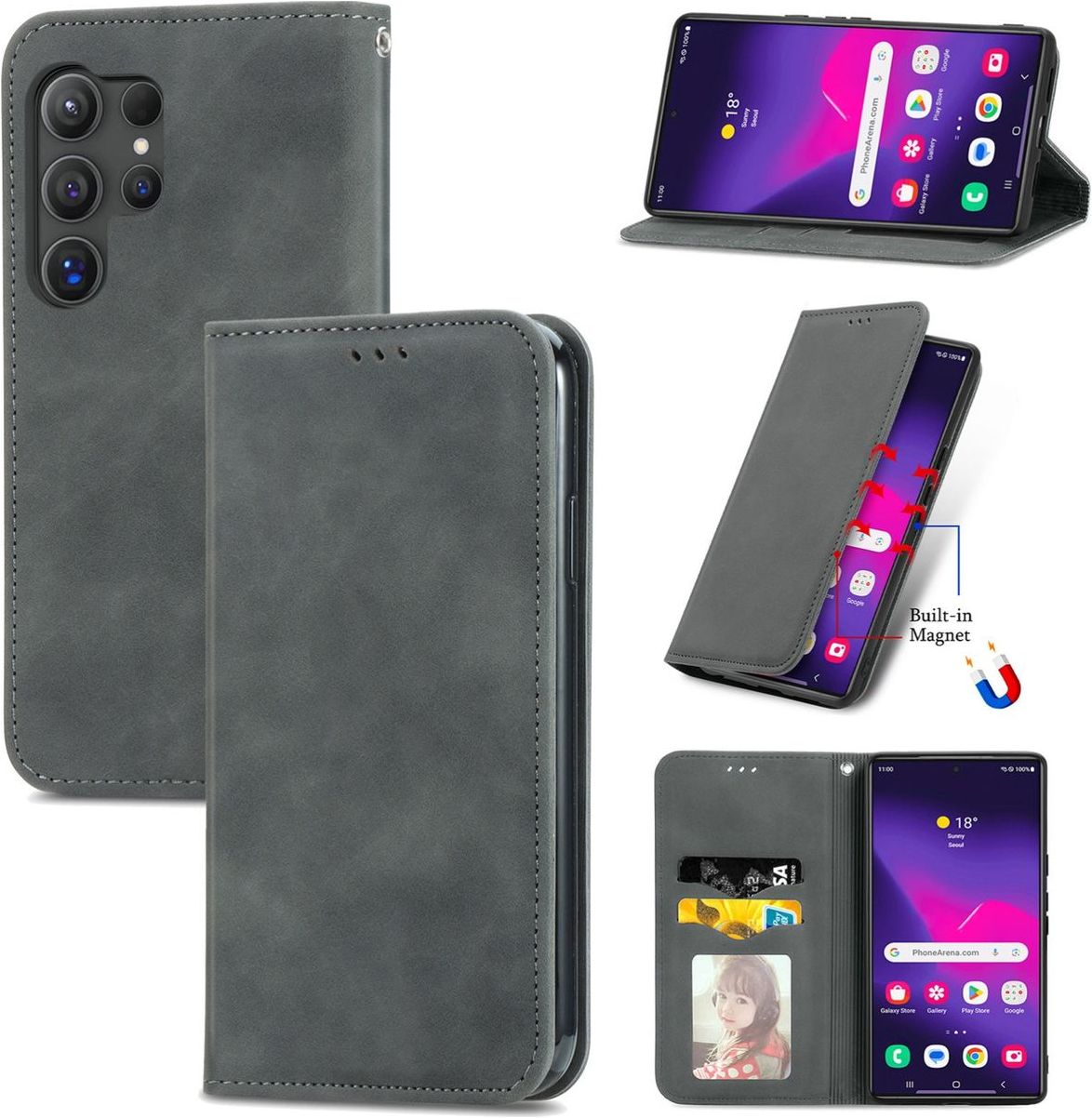 Mobigear Retro Slim Samsung Galaxy S25 Ultra Hoesje Bookcase Portemonnee - Grijs