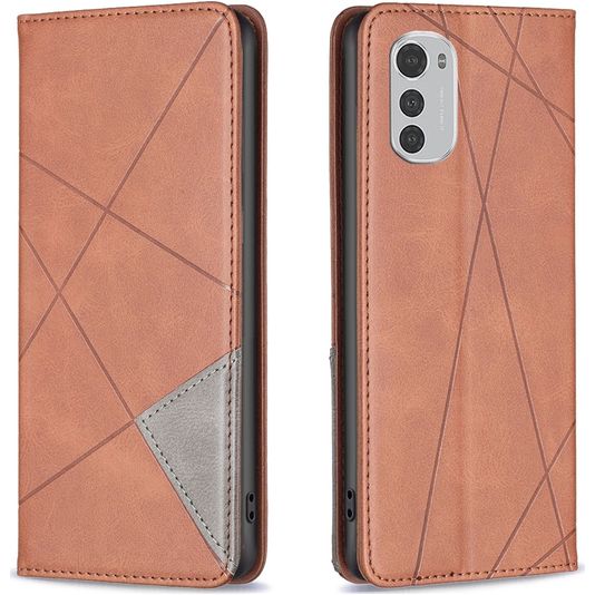 Wil je een Motorola Moto E32s hoesje met volledige bescherming rondom en een stijlvol en praktisch design? Dan is dit Mobigear Rhombus Slim bookcase hoesje voor Motorola Moto E32s de perfecte keuze. Het booktype hoesje is gemaakt van hoogwaardig kunstleer en uitgevoerd in de kleur bruin. Met een boek hoesje is je Motorola Moto E32s rondom goed beschermd, inclusief het kwetsbare scherm. De voorklep opent opzij als een boek en sluit stevig met een magnetische sluiting. Er is ruimte voor 2 pasjes zodat je altijd je bankpas of ID bij de hand hebt.