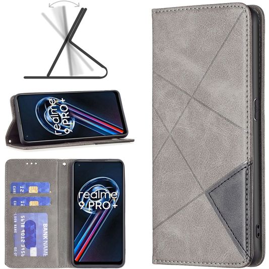 Mobigear Rhombus Slim Realme 9 Pro Plus Hoesje Bookcase - Grijs