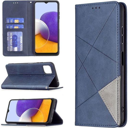 Wil je een Samsung Galaxy A22 5G hoesje met volledige bescherming rondom en een stijlvol en praktisch design? Dan is dit Mobigear Rhombus Slim bookcase hoesje voor Samsung Galaxy A22 5G de perfecte keuze. Het booktype hoesje is gemaakt van hoogwaardig kunstleer en uitgevoerd in de kleur blauw. Met een boek hoesje is je Samsung Galaxy A22 5G rondom goed beschermd, inclusief het kwetsbare scherm. De voorklep opent opzij als een boek en sluit stevig met een magnetische sluiting. Er is ruimte voor 2 pasjes zodat je altijd je bankpas of ID bij de hand hebt.